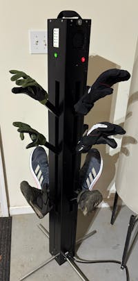 It’s great that we can have our friends, family and ourselves go to the mountains, all warm and dry every day. Just one hour, and the boots and gloves are nice and cozy, we love this. It’s a great addition to any house in the mountains . We put it in the garage right next to the ski rack, so convenient. We store our ski boots on it even when not in use, which frees up a lot of space in the mudroom. So glad we found this!